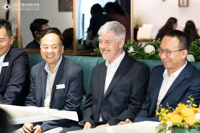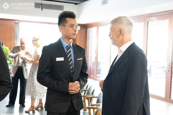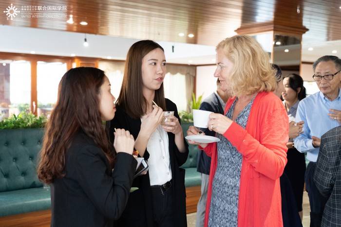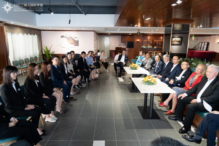 随后,来宾与12位来自各学部的学生代表交流,了解同学们在UIC的学习生活情况,并对同学们将来的升学就业给予了建设性的意见和指导。