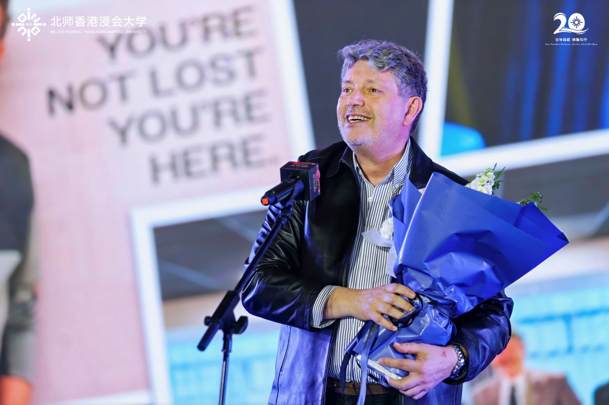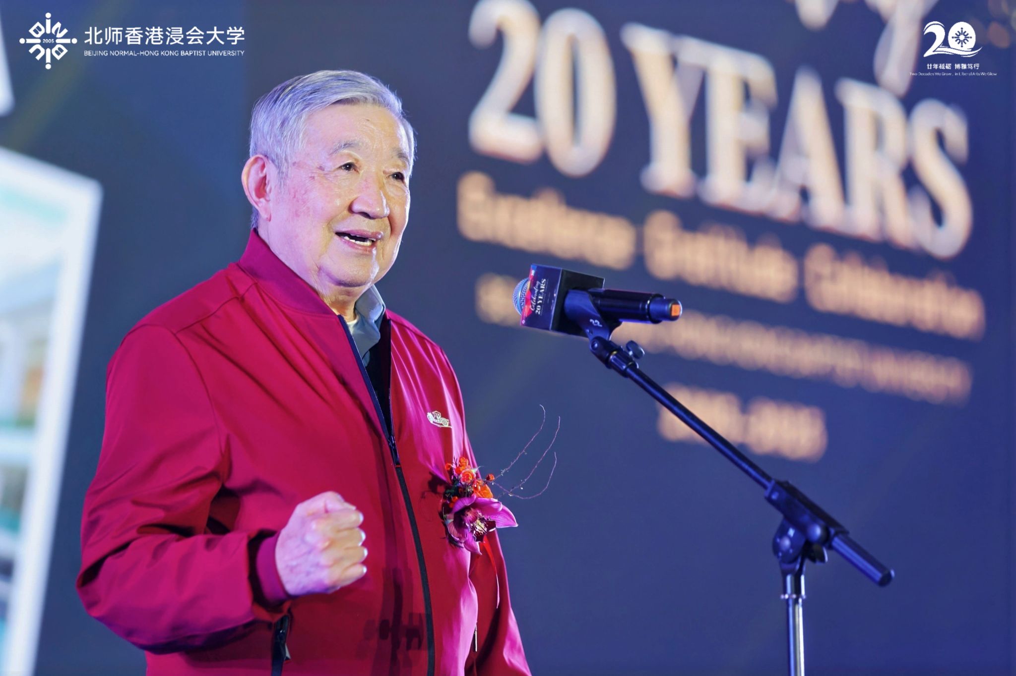 北师港浸大校长陈致教授发表致辞,回顾二十年来学校的成长历程,并向每一位倾注努力的同仁送上感谢。他表示,未来学校将坚守博雅教育初心,并不断推动跨学科发展:“在这个技术变革日新月异、人工智能快速崛起的时代,我们已做好引领创新的准备,让北师港浸大走在时代前列。”